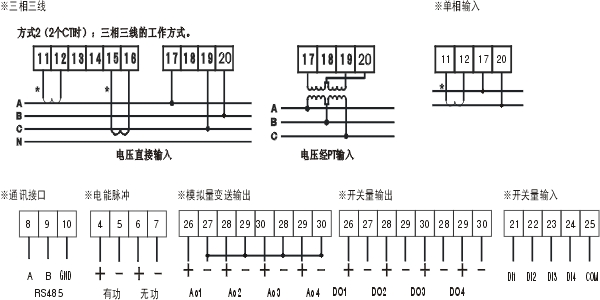電力網(wǎng)絡(luò):三相三線 通訊:RS-485/MODBUS-RTU