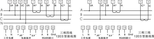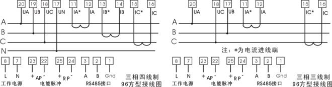 D. 儀表輸入網(wǎng)絡(luò)的配置根據(jù)系統(tǒng)的CT個(gè)數(shù)決定,在2個(gè)CT的情況下,選擇三相三線兩元件方式;在3個(gè)CT的情況下,選擇三相四線三元件方式。儀表接線、儀表編程中設(shè)置的輸入網(wǎng)絡(luò)NET應(yīng)該同所測(cè)量的負(fù)載的接線方式一致,不然會(huì)導(dǎo)致儀表測(cè)量的電壓或功率不正確。其中在三相三線中,電壓測(cè)量和顯示的為線電壓;而在三相四線中,電壓測(cè)量顯示的為相電壓。